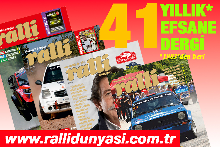 Ülkemizin otomobil ve sporları içeriğine sahip ‘ilk’ ve ‘tek’ dergisi Ralli Dünyası, sizi de gizemli dünyasına davet ediyor! 41 Yıllık mazisinde 10 yıldan fazla sürede bayi raflarında okurları ile buluşan dergi, o günden bugüne sadece kargo hizmeti ile yine okurlarıyla buluşmasını sürdürüyor. Eminiz ki, her ay, derginin yeni sayısının kargo ile gelmesini artık siz de sabırsızlıkla beklemek isteyeceksiniz.
